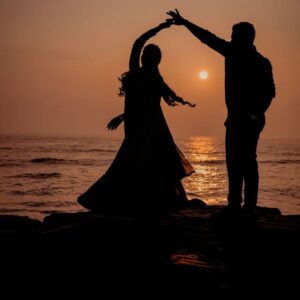 Capture dramatic outlines against a glowing sky—always a breathtaking pre-wedding favorite.
